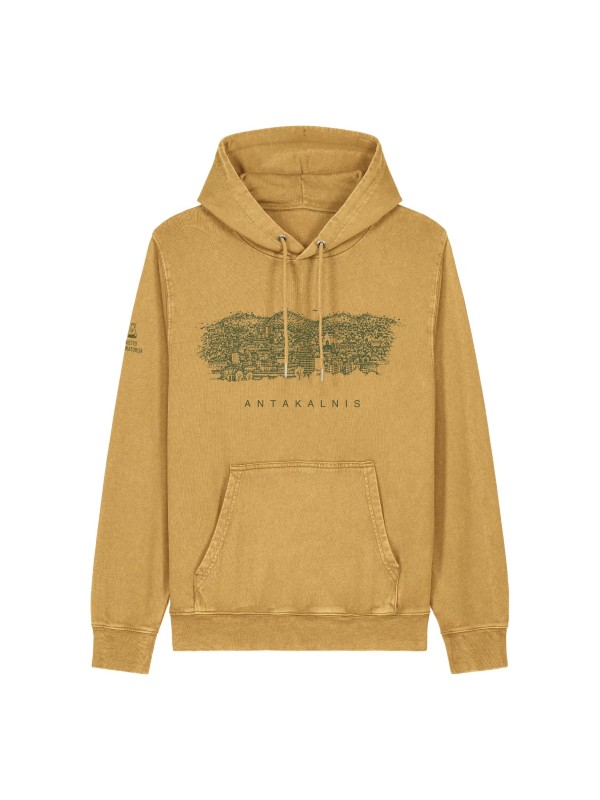 Laisvo stiliaus džemperis su kišenėmis ir kapišonu, sendinto (vintage) stiliaus. Medžiagos sudėtis: 100% sertifikuota organinė medvilnė. Medžiagos tankis 300 G/M².